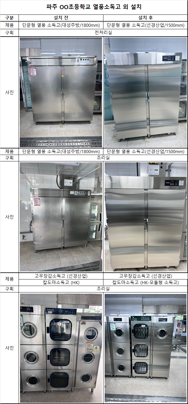 [조달 기물 설치] 파주 OO초등학교 열풍소독고 외 설치